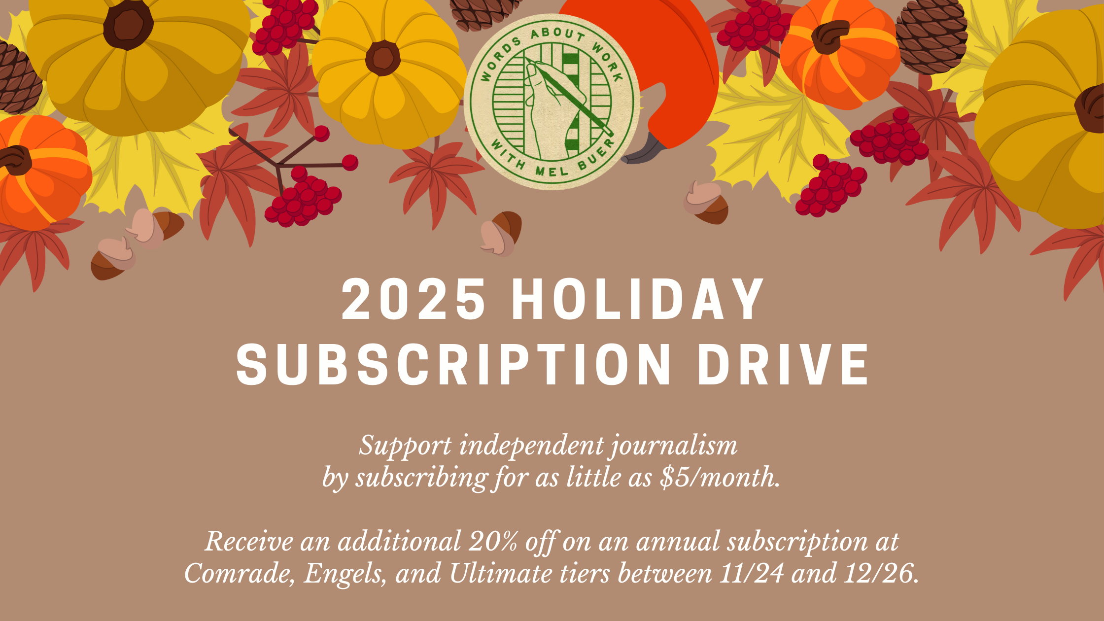 A reminder to my readers that if you've got an action, a potluck, a baseball game, a union picket, or any other labor-related event coming up and you'd like to get some eyes on it or invite folks to join, this newsletter is for you. Send me an email at melbuer@proton.me and I'll make sure to add it to next week's digest.