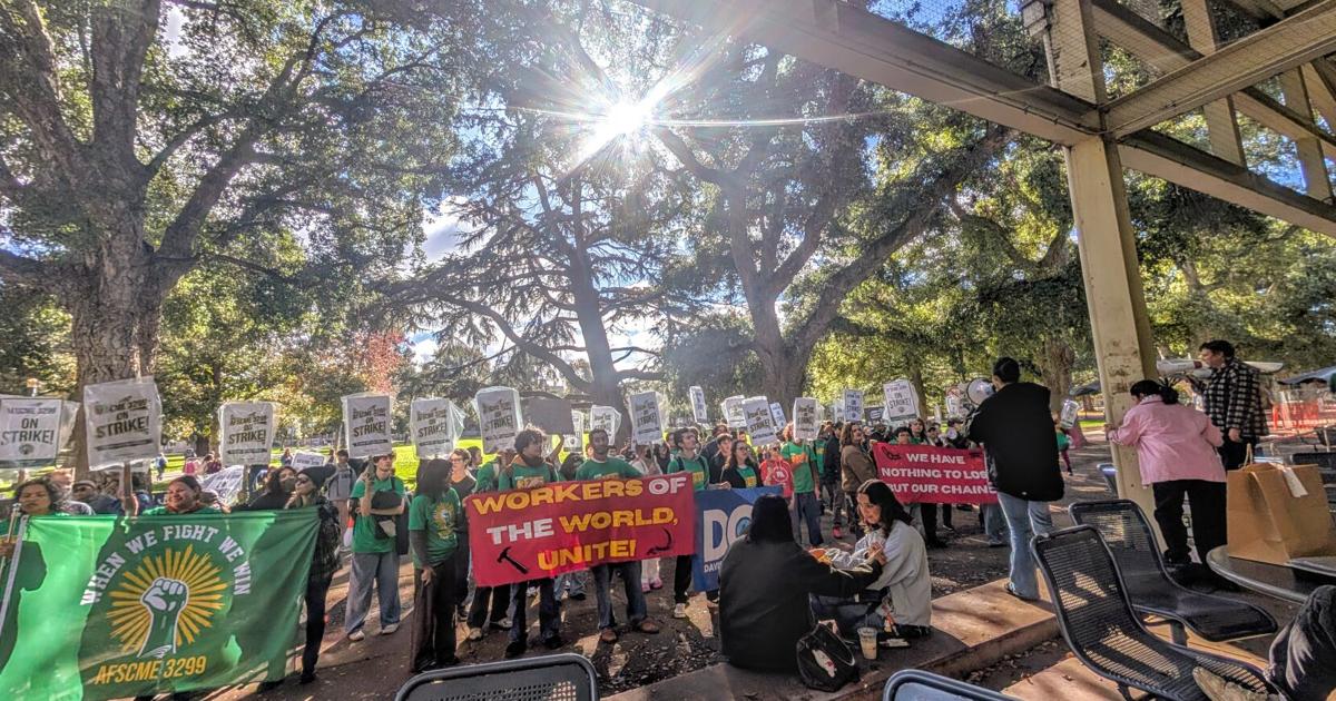 More than 40,000 custodians, food service workers, patient care assistants, and hospital technicians represented by the American Federation of State, County and Municipal Employees Local 3299 held a two-day strike Monday and Tuesday across UC campuses, where they’re advocating for a contract focused on affordable healthcare, livable wages, and job security.
