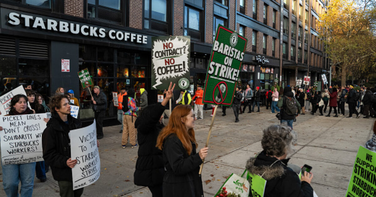 ‘No contract, no coffee’: what to know about the Starbucks workers’ strike in 65 US cities